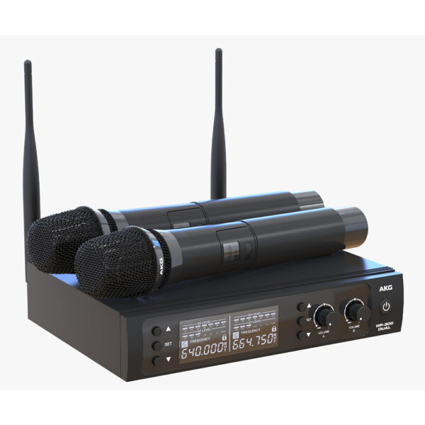 AKG WP 300 – MICROFONE WIRELESS – Transmissão Digital Dupla (True Diversity) – Bastão com cápsula dinâmica cardióide – 100 canais de frequências selecionáveis – Full Scan – 4 Sistemas simultâneos por banda – Bivolt – Display LCD e Antenas destacáveis – Faixa de Frequência: 640.000 a 664.750 MHz