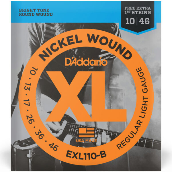 Cordas para Guitarra D’Addario XL Nickel Wound EXL110-B .010-.046 Com Corda Extra PL010 As D’Addario XL Nickel Wound são reconhecidas mundialmente como a escolha dos grandes músicos de todos os gêneros e estilos. São feitas de aço banhado a níquel e enroladas com alta precisão ao redor de uma alma…