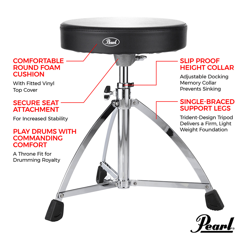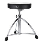 O banco D-730S possui um assento almofadado redondo coberto por vinil e um tripé com ferragem simples com trava de altura a prova de deslizamento.