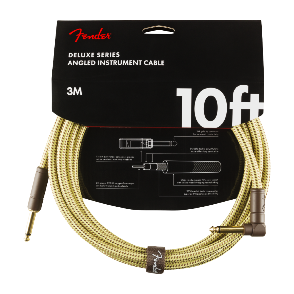 Cabo para instrumento, Fender Deluxe 10´, conectores Reto/Angulado 1 /4”, acabamento Tweed, 10ft (3,05 m) de comprimento.