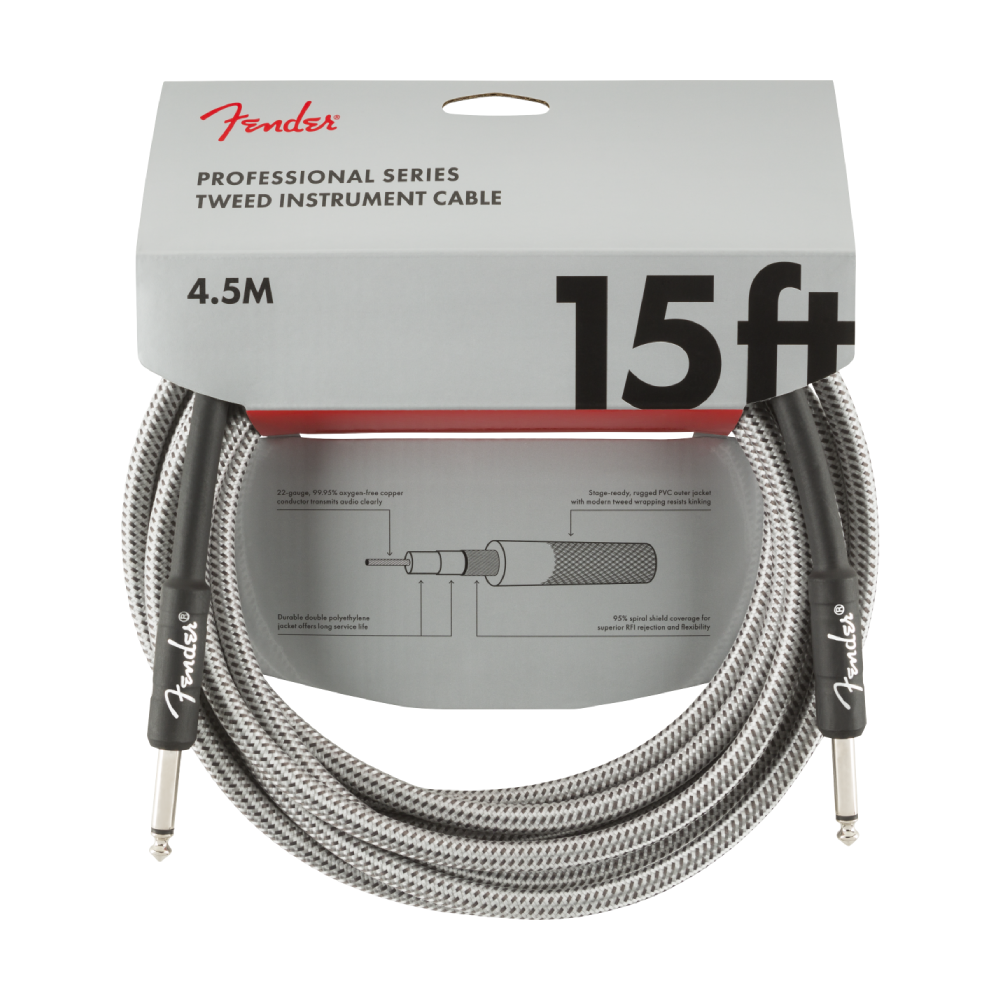 Cabo para instrumento, Fender PRO15´, conectores 1 /4” (P-10/P-10), acabamento em Tweed Branco e 15ft (4,57 m) de comprimento.
