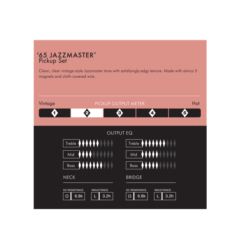 Nenhum outro captador projeta o icônico som limpo e definido estilo vintage, e o rasgado nervoso de textura inconfundível da Fender Jazzmaster de 1965 como os captadores Pure Vintage.
