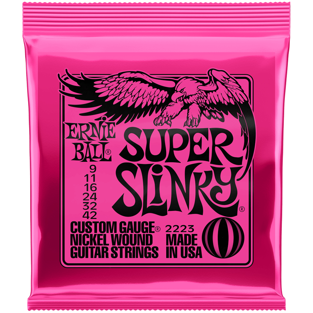As Cordas Super Slinky são usadas por Jimmy Page, Jeff Beck e Angus Young. Estas cordas são fabricadas com precisão para os mais altos padrões e especificações mais exigentes, garantindo a consistência, desempenho ideal e durabilidade. Cordas Super Slinky são feitas de fio de aço niquelado envolto em torno de um fio hexagonal de aço no núcleo. As cordas lisas são feitas de aço carbono temperado banhado à estanho, produzindo um tom bem equilibrado para a sua guitarra. Bitolas Gauges .009, .011, .016, .024w, .032, .042