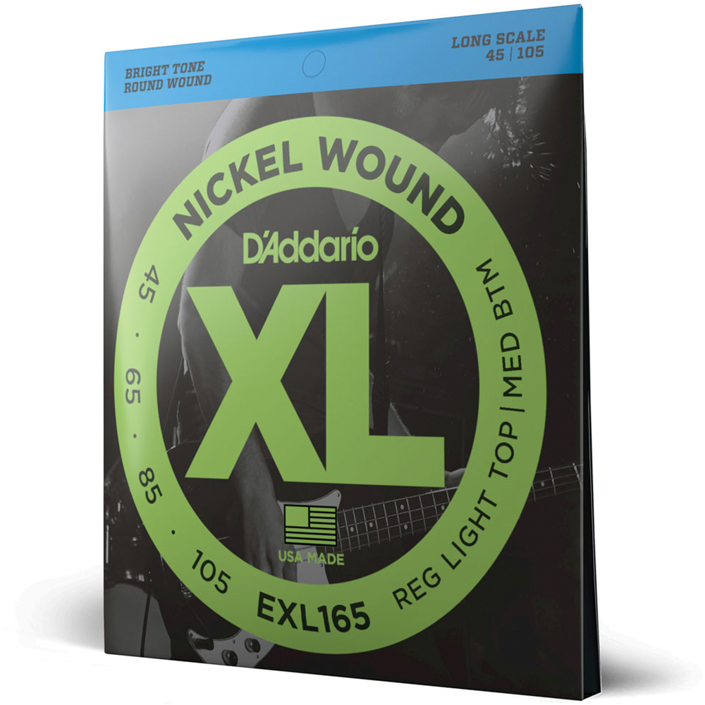Cordas Para Baixo D’Addario XL Nickel Wound EXL165 4 Cordas Escala Longa .045-.105