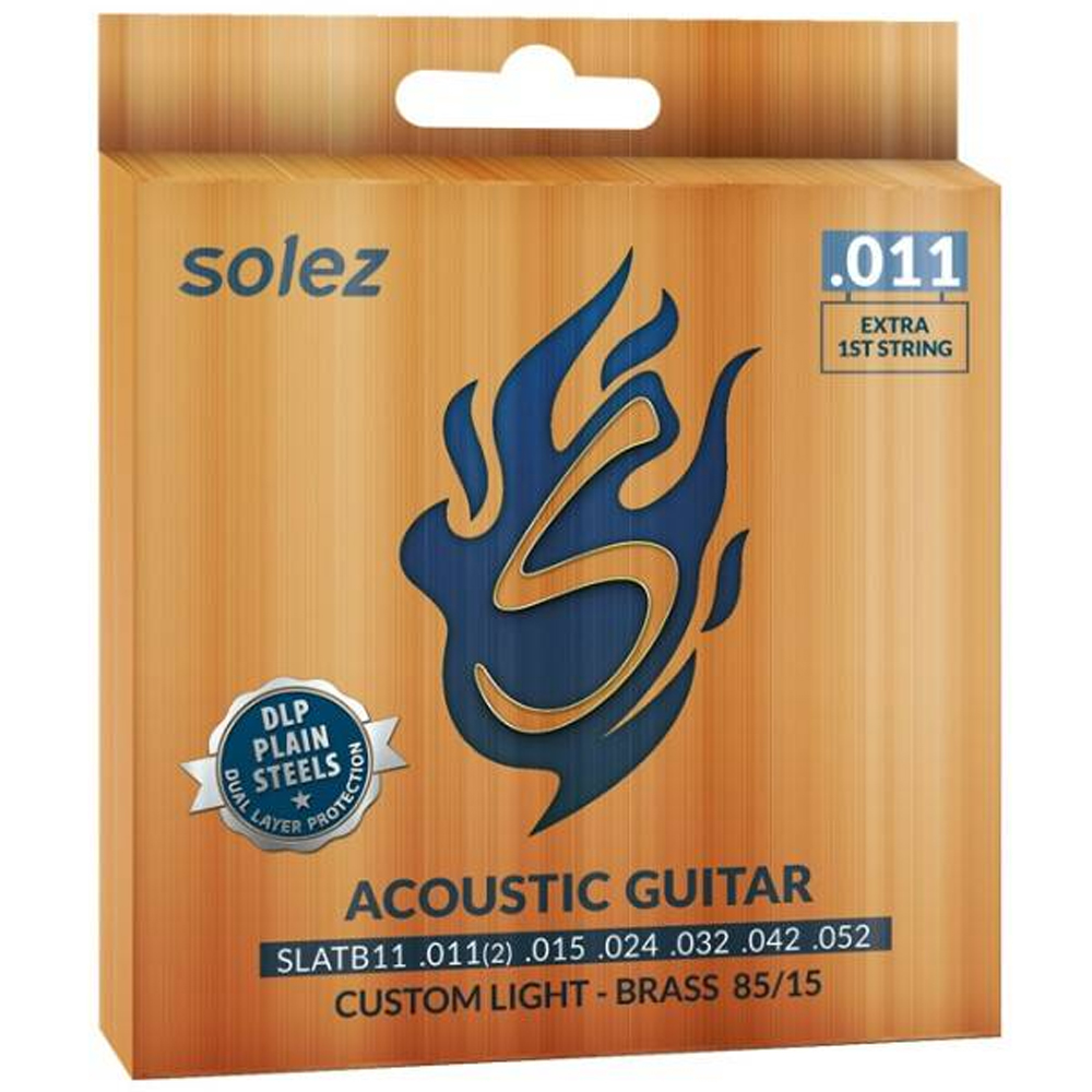 Encordoamento para violão aço Solez Bronze 85/15. Cordas para violão com som com médios reforçados, brilho bem presente e graves macios. Indicados para todos os estilos apresenta o que há de melhor de custo-benefício da linha Solez. Com o DLP e a liga de bronze de alta qualidade, apresenta boa durabilidade e ótimo timbre. Calibre custom light para privilegiar a tocabilidade com mais pegada.