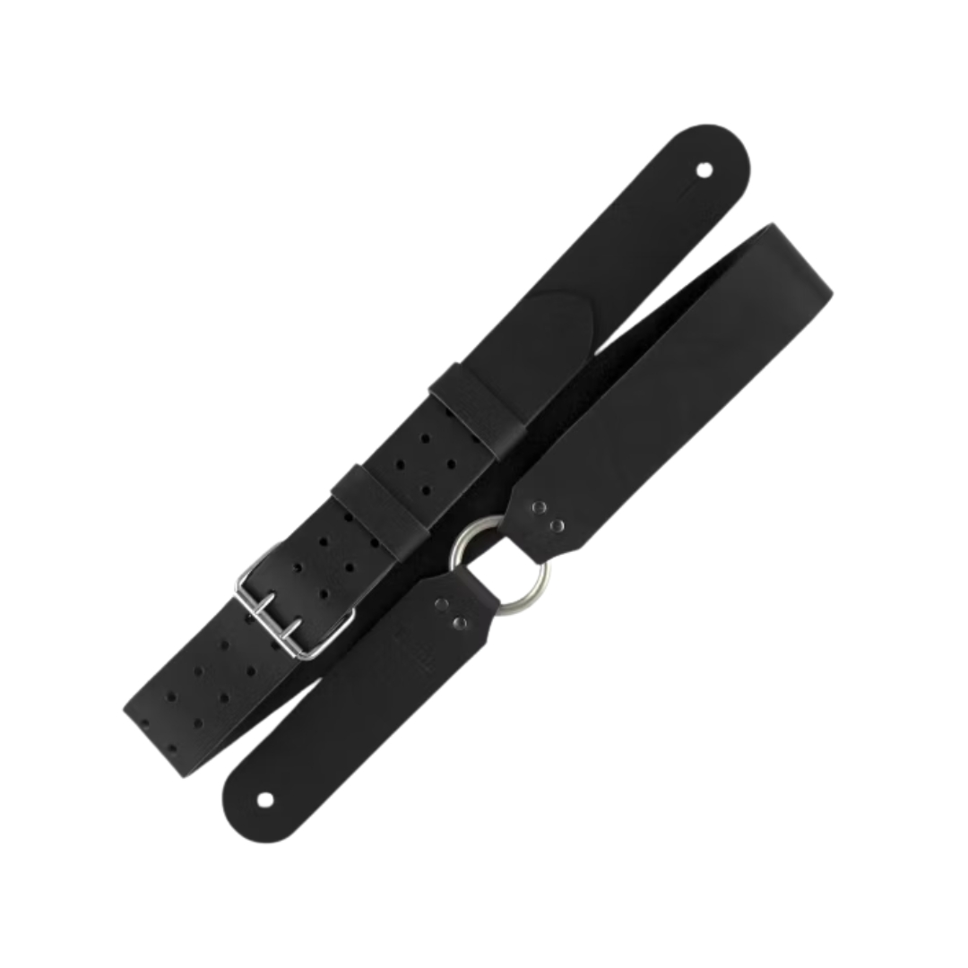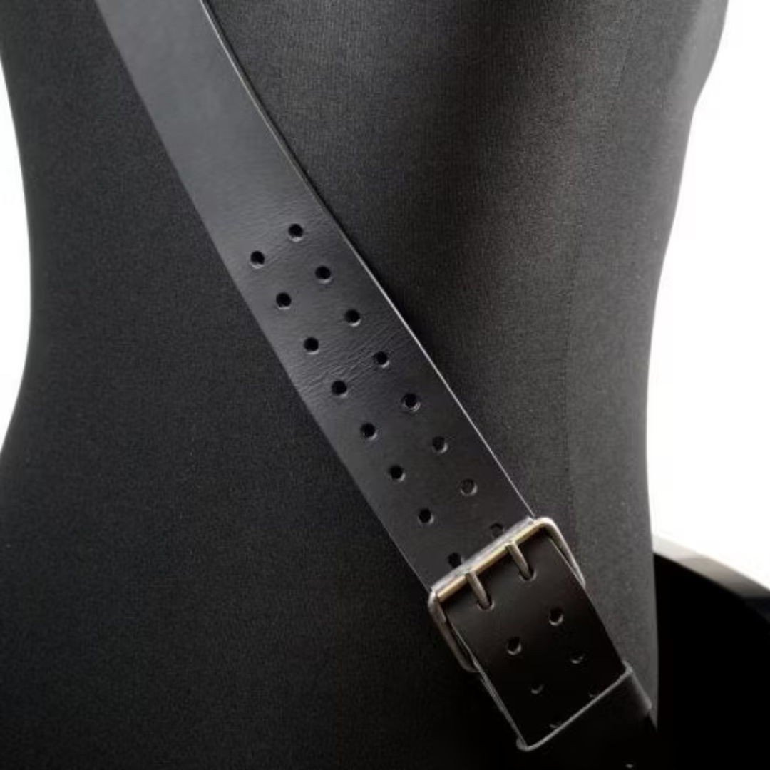 Possui argola metálica prata e fivela de dois furos, que proporcionam segurança, fácil ajuste e um visual marcante. A superfície interna é alisada, polida e sem fiapos — oferecendo excelente aderência: nem escorregadia, nem pegajosa.
