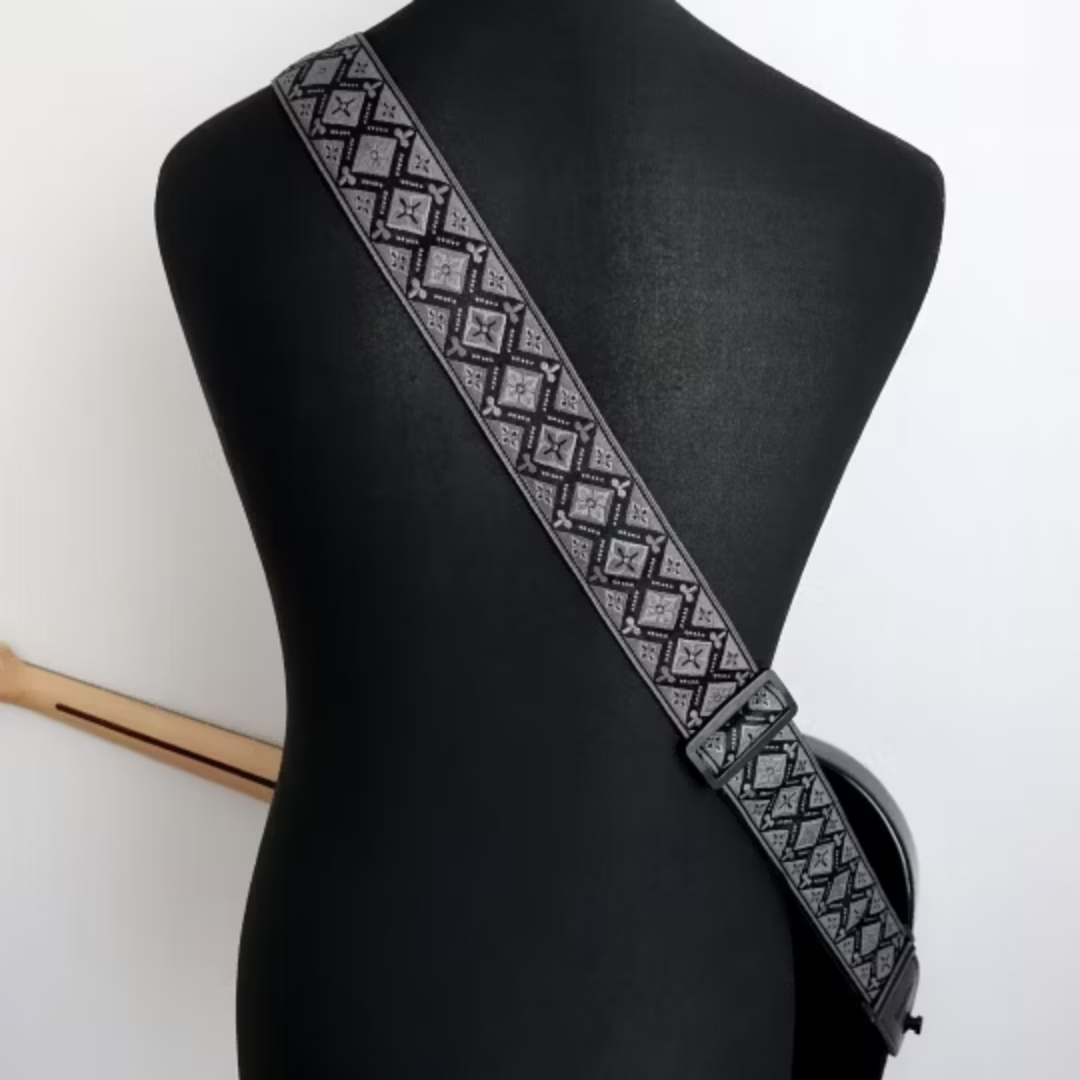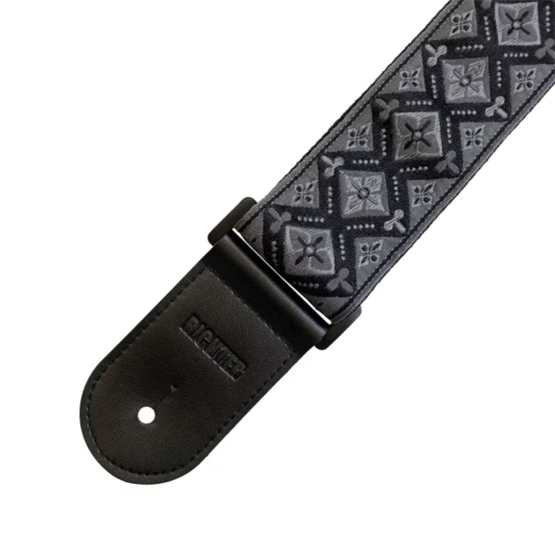Simples, leve e com um visual marcante, a Correia Retrô Couro Sintético Preto/Cinza Richter é perfeita para músicos que desejam conforto, estilo e durabilidade, com a confiabilidade de um produto alemão, feito à mão.