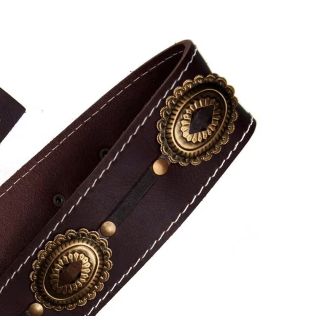 • Cor: Marrom com Conchos Bronze antigo