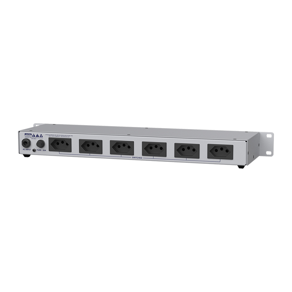 – Chave ON/OFF iluminada, comutando as 6 tomadas (NBR 14136-2P+T) do painel traseiro.