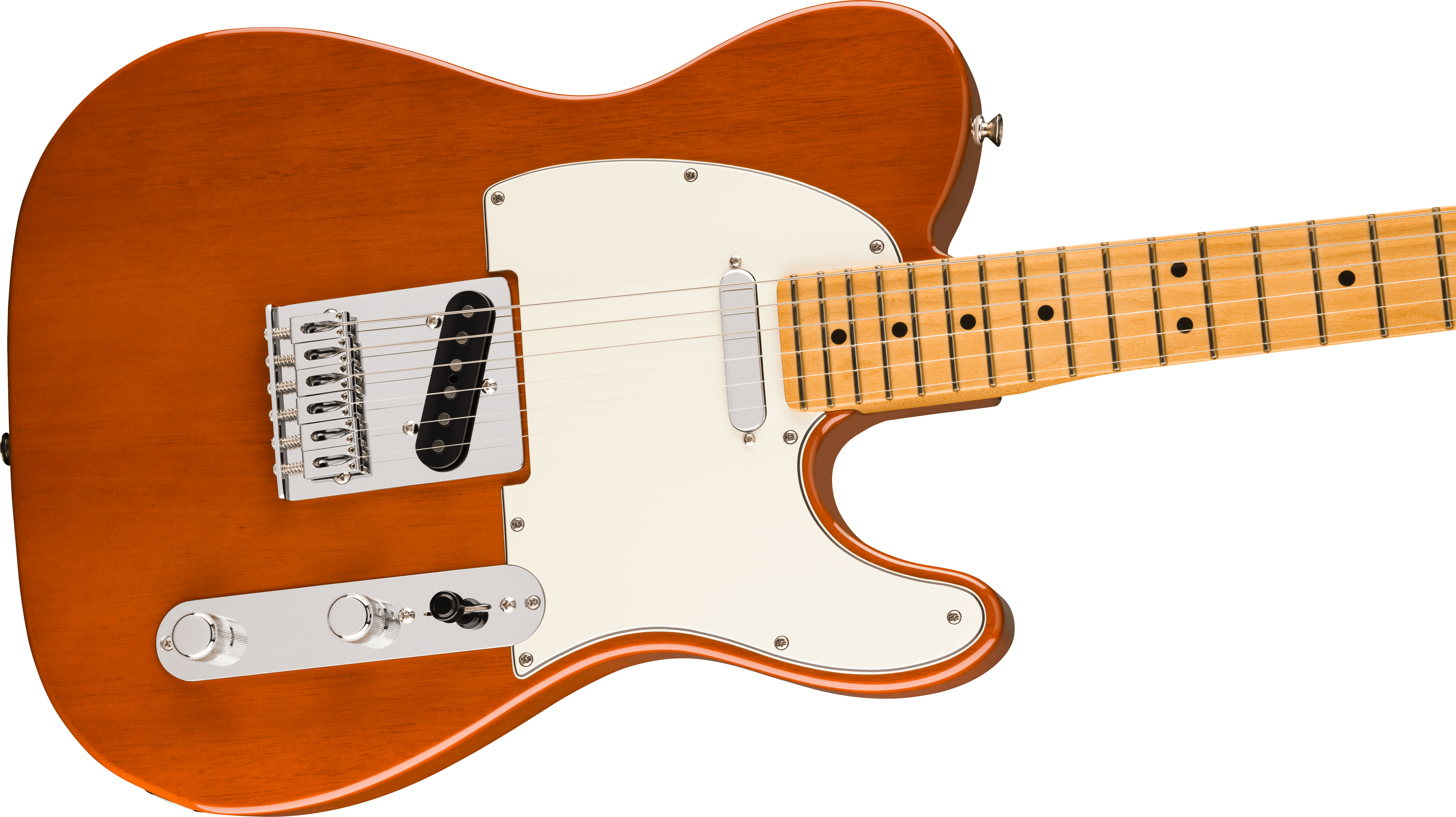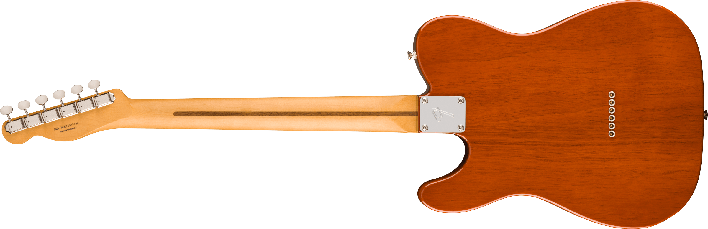 O corpo em chambered mahogany oferece médios encorpados e graves presentes, além de um peso reduzido que aumenta o conforto em apresentações prolongadas. A escala em maple de 9,5″ com bordas suavizadas garante tocabilidade imediata e clareza sonora, favorecendo articulação e definição. Os captadores Player Series Alnico V Tele® single-coil entregam o twang característico da Telecaster, com agudos cristalinos, médios equilibrados e graves controlados. A ponte string-through-body com seis saddles de aço bloco proporciona entonação precisa e estabilidade, enquanto as tarraxas ClassicGear asseguram afinação confiável.