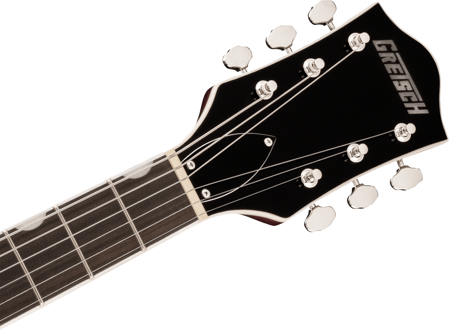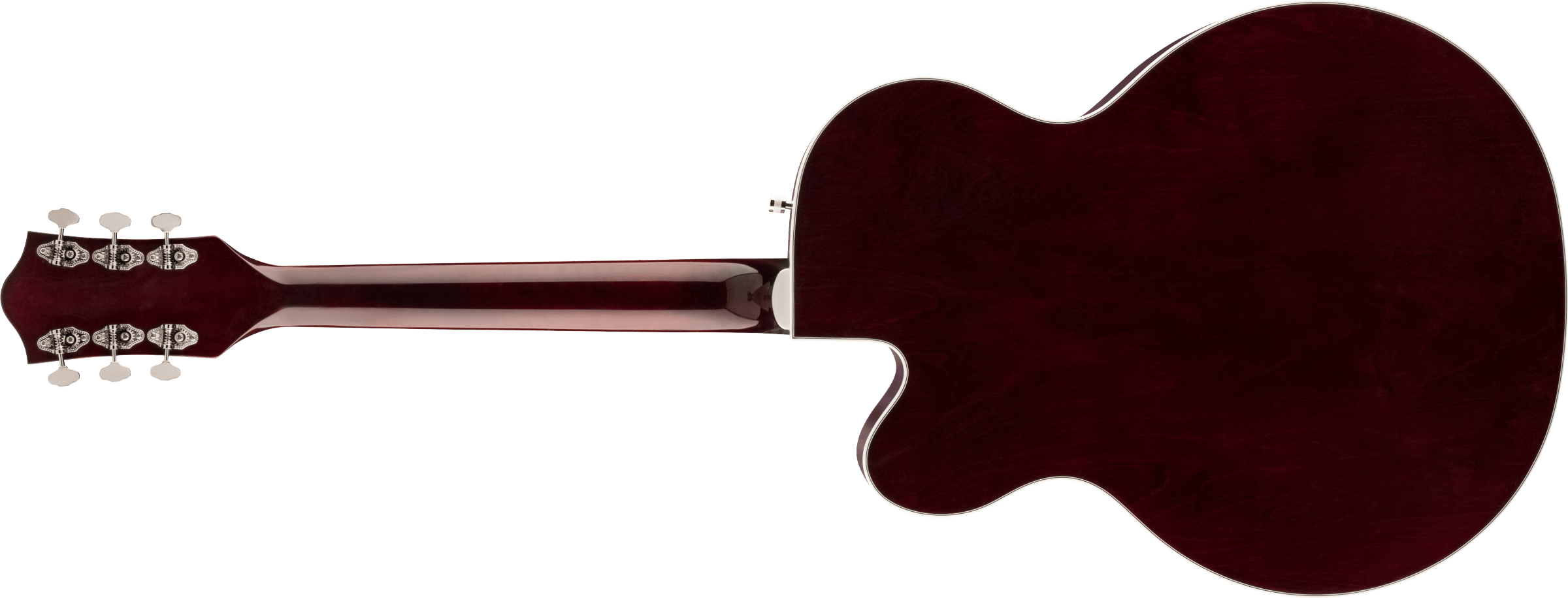 O corpo hollow em maple laminado mantém a característica aberta e ressonante das Gretsch, mas com o suporte estrutural do trestle block, que melhora o foco das notas, aumenta o sustain e reduz a tendência à microfonia. Isso torna o instrumento mais previsível e utilizável em volumes mais altos.