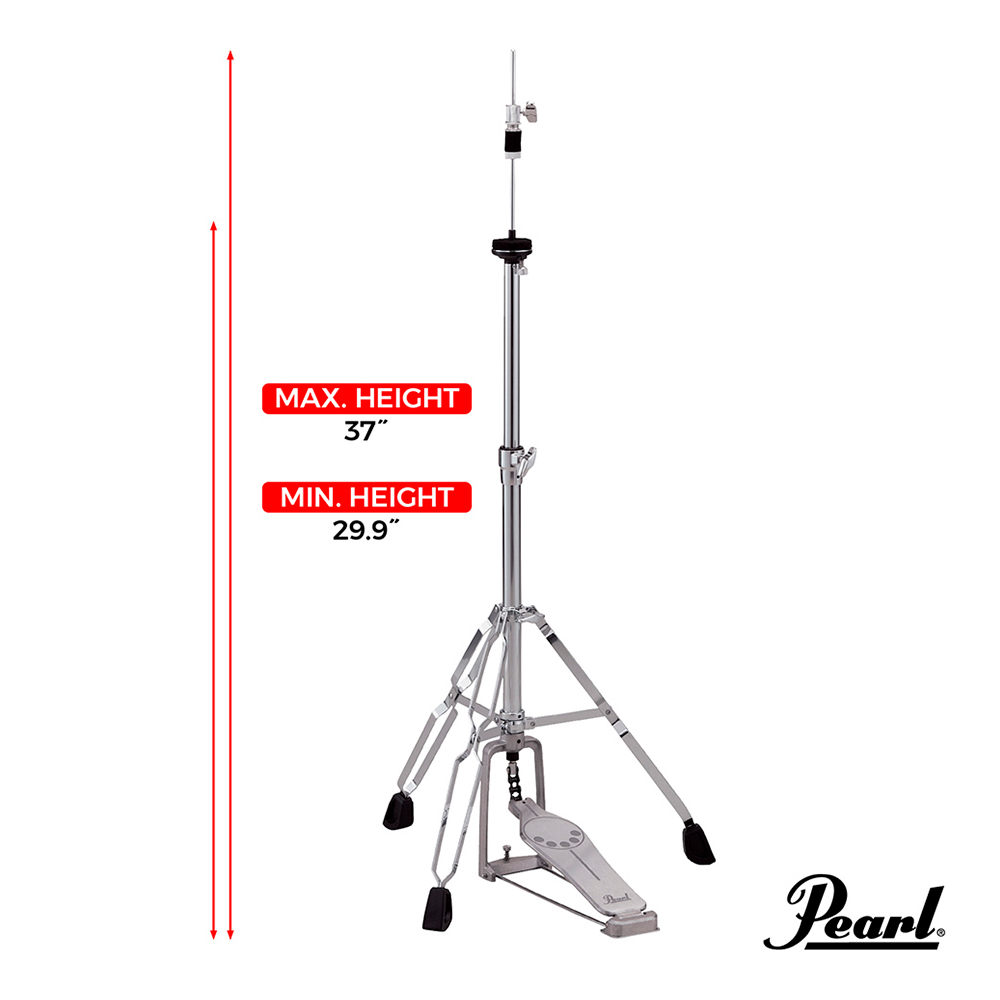 Máquina de Hi-Hat Pearl H-830, foi construída com ferragem reforçada e pernas com ferragem dupla que proporciona maior estabilidade.