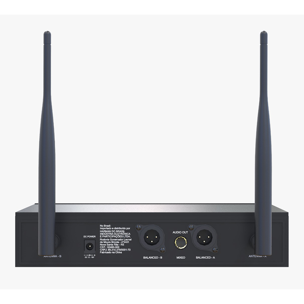 O microfone sem fio profissional WP300 DUAL oferece praticidade em situações com mais de um locutor, o sistema é fácil de configurar, transmissão em Ultra High Frequency, receptor com antenas externas destacáveis para melhor desempenho, display para monitoração dos níveis de sinal, frequência e ajustes de programação, saída de sinal de áudio balanceada ou desbalanceada.