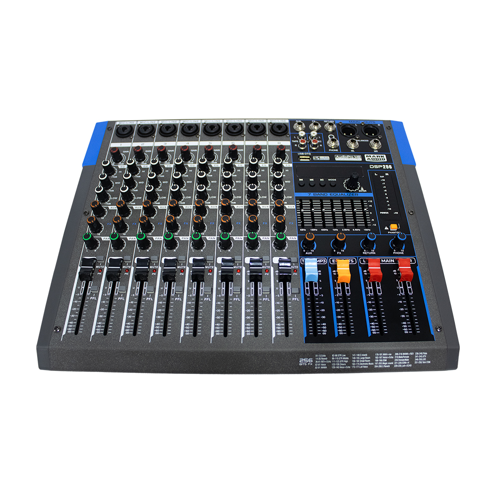 Com 8 canais, conectores combo XLR + P10 balanceados, equalizador de 3 bandas por canal, e uma impressionante seleção de 256 efeitos digitais (DSP), a AudioPro M8 proporciona controle total sobre cada detalhe da sua mixagem. Também conta com phantom power +48V, ideal para microfones condensadores, além de módulo MP3/BT, permitindo reprodução direta via USB ou conexão sem fio.