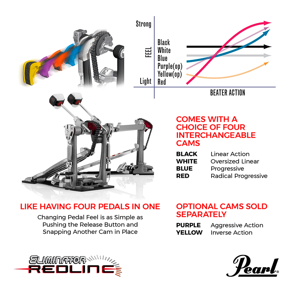 Combinando a incrível flexibilidade e ação de nossos pedais da série Demon com uma unidade mais focada na potência, o Eliminator: Redline amplia ainda mais os limites da execução do bumbo.