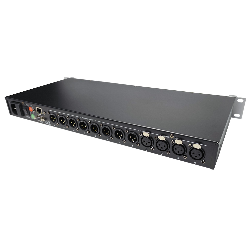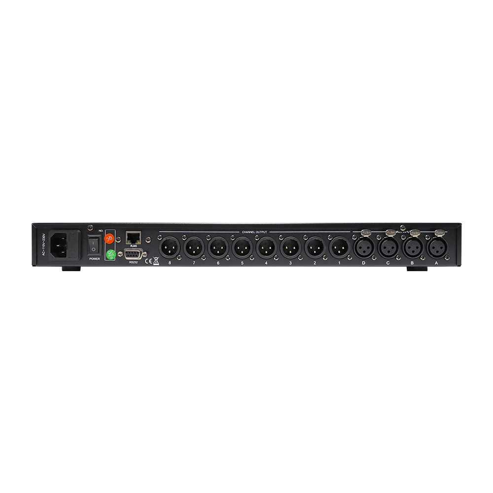 – Parâmetros de controle inclusos: Ganho, Fase, Mute, Indicação de nível de canal, Delay, Limitador de nível, Gate, Roteamento de canal, Filtro FIR, Replicação de canal, Gerador de ruído/sinal (Tipo: Sine – White – Pink – Sweep), Compressor/Limitador;