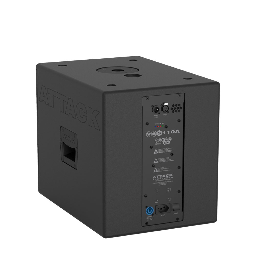 O subwoofer amplificado VSS110A da linha Versa RED da ATTACK é projetado para sonorização de pequenas e médias áreas que exijam excelente qualidade de áudio de sistemas compactos. Com um alto-falante de 10” montado em um gabinete acústico bass reflex, o VSS110A oferece um som poderoso com grande capacidade de excursão e baixíssima distorção.