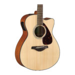 A primeira opção ao experimentar a música eletroacústica. Derivado do FS800 que tem o tampo sólido em Spruce e fundo e laterais em nato/okume, o FSX800C tem corte de corpo e sistema elétrico. O captador piezo sob o rastilho e o pré-amplificador analógico System66 de propriedade da Yamaha garantem o desempenho amplificado sólido. O corpo pequeno e fino é perfeito não só para violinistas mulheres e jovens, mas também para violinistas com estilo de dedilhado de nível superior.