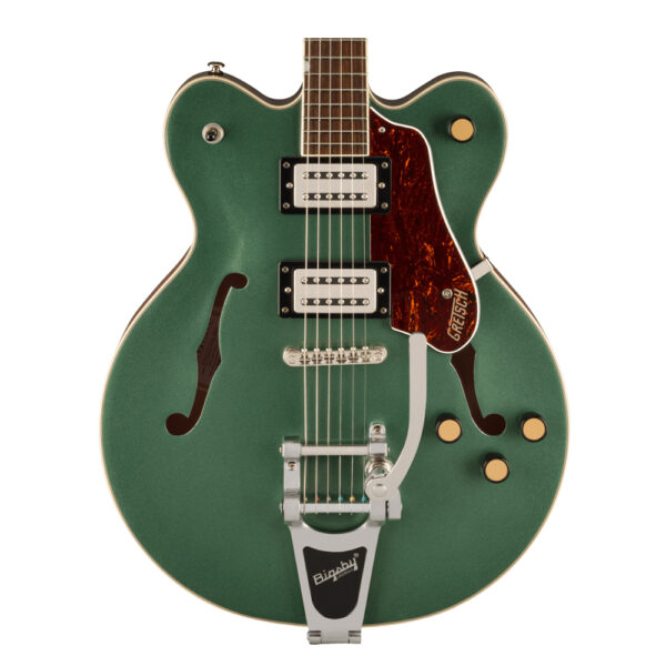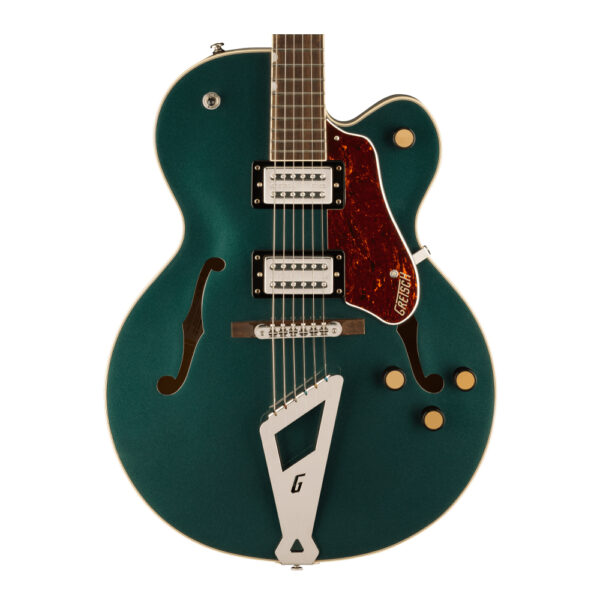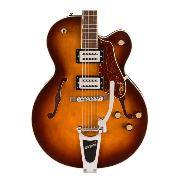 A Gretsch G2420T Streamliner™ Hollow Body leva a proposta moderna da linha Streamliner um passo além ao incorporar o vibrato Bigsby®, adicionando expressão e identidade ao instrumento. Com construção totalmente oca e captadores Broad’Tron™ BT-3S, ela mantém o som amplo e aberto característico das hollow bodies, agora com mais possibilidades…